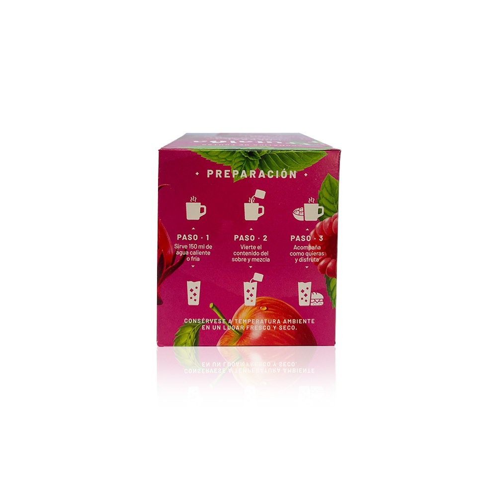 | Sabor | Maracuyá & Hierbabuena, Frambuesa & Menta, Papayuela & Cidrón, Frutos Rojos & Canela, Manzana & Flor de Jamaica |