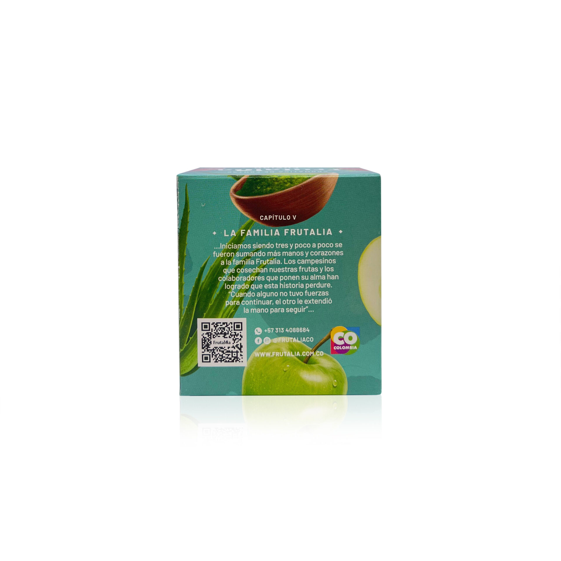 | Ingredientes | Pulpa de fresa, sorbitol, pulpa de maracuyá, pulpa de manzana, aloe vera, extracto de té matcha, sabores naturales, acidulante, (ácido cítrico), antioxidante (ácido ascórbico), endulzante natural (Stevia), estabilizante (goma guar), conservante (benzoato de sodio), colores naturales (clorofila annato). |