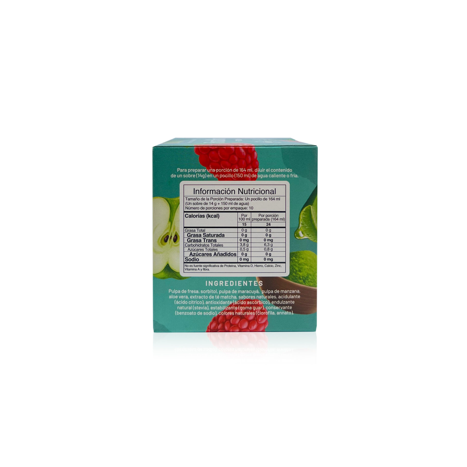 | Sabor | Frambuesa & Té Matcha con Manzana Verde y Aloe Vera |